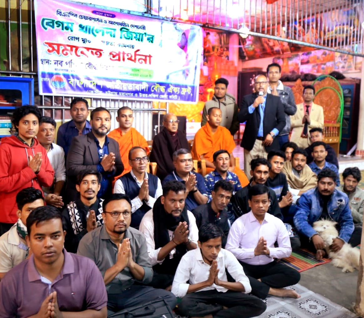প্রার্থনায় অধ্যক্ষ ড. উপানন্দ মহাথেরো বলেন,দেশনেত্রী বেগম খালেদা জিয়া দ্রুত সুস্থ হয়ে জাতির সেবায় ফিরে আসুন—এ কামনাই বৌদ্ধ সমাজসহ দেশের সকল শান্তিকামী মানুষের।