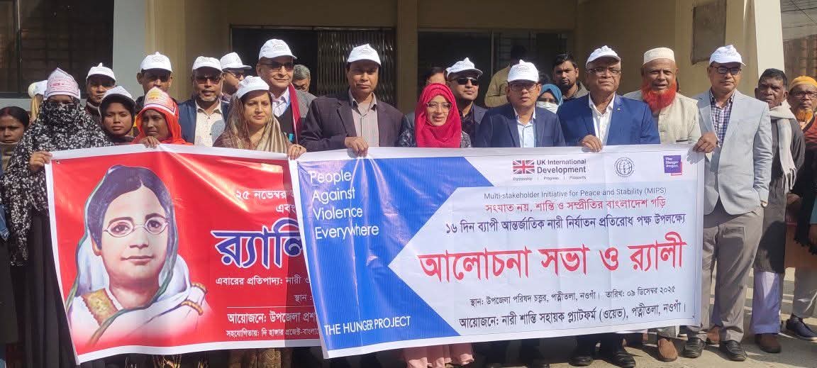 নওগাঁর পত্নীতলায় আন্তর্জাতিক নারী নির্যাতন প্রতিরোধ পক্ষ এবং বেগম রোকেয়া দিবস ২০২৫ উদযাপন উপলক্ষ্যে র্যালী ও আলোচনা সভা এবং অদম্য চারজন নারীকে জয়ীতা সম্মাননা ২০২৫ প্রদান করা হয়েছে।