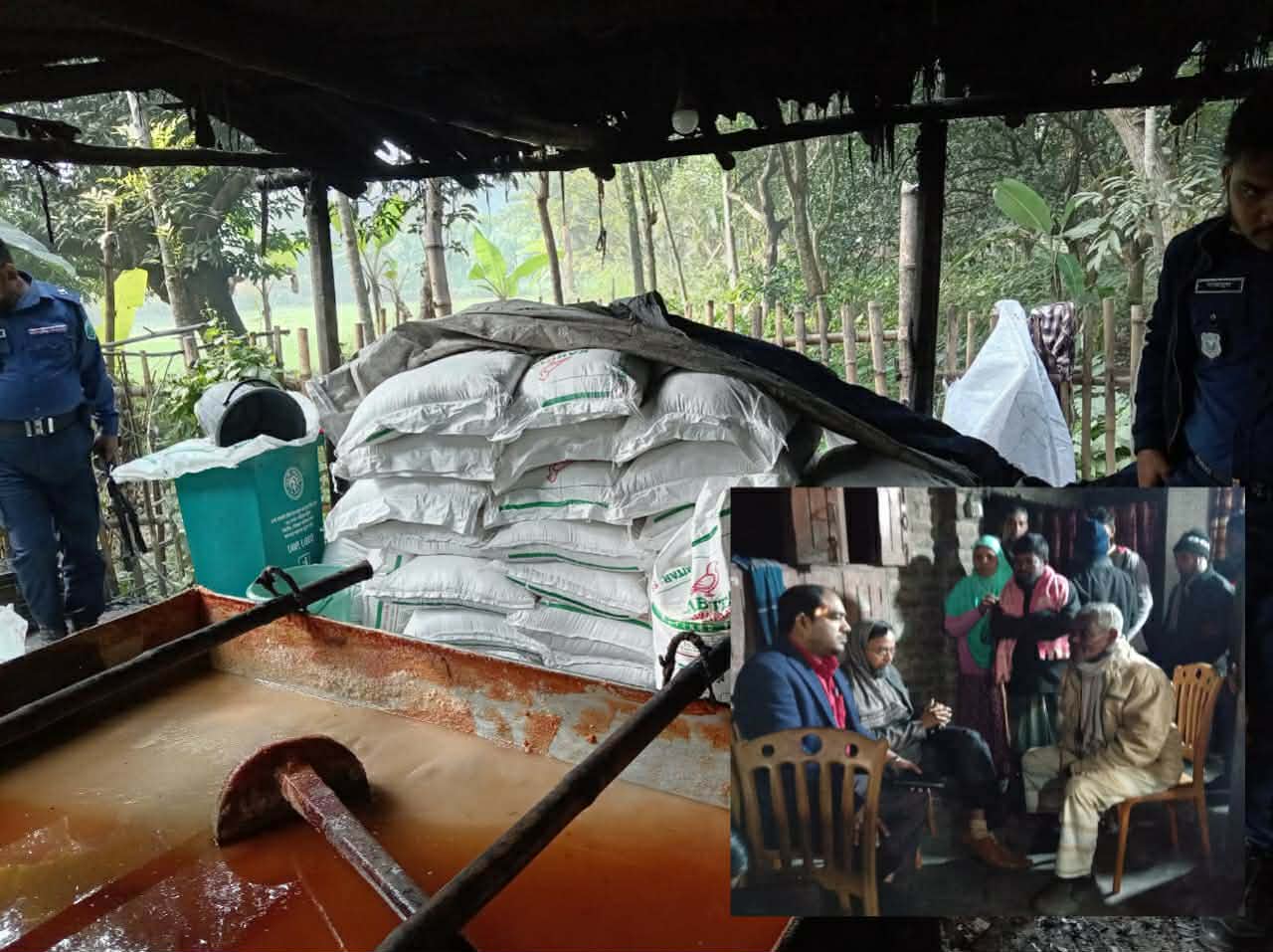 জানা যায়, উপজেলার আড়ানী পৌরসভার ৩ নং ওয়ার্ড এলাকায় মোঃ পাঞ্জা আলী ও মোহাম্মদ আলম আলীর বাড়িতে অবৈধ ভেজাল গুড় উৎপাদকারী কারখানায় অভিযান চালায় ভোক্তা অধিকার সংরক্ষণ অধিদপ্তর। এ সময় কারখানা তল্লাশি করে বিভিন্ন রাসায়নিক অপদ্রব্য, যার মধ্যে ছিল ফিটকিরি, পাথরি চুন, হাইড্রোস এবং চিনি মিশ্রণ উদ্ধার করা হয়।