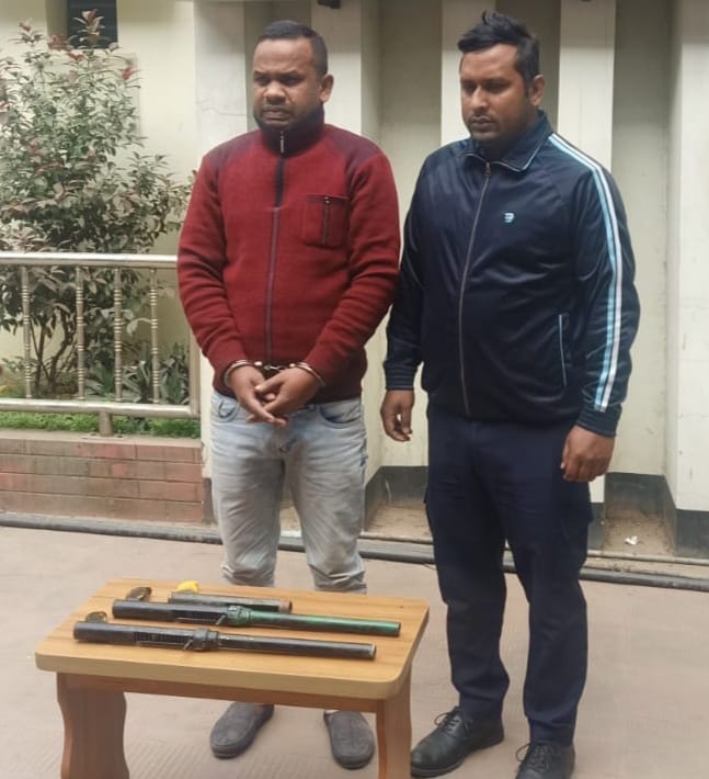 নারায়ণগঞ্জ জেলার রূপগঞ্জ উপজেলার চনপাড়া পুনরবাসন এলাকা থেকে যৌথ বাহিনীর সদস্যরা অভিযান চালিয়ে তিনটি শুটারগান সহ রাসেল বেপারী(৪০) নামের এক সন্ত্রাসীকে গ্রেফতার করেছে। গতকাল ৫ জানুয়ারি সোমবার গোপন সংবাদের ভিত্তিতে তাকে গ্রেফতার করা হয়। সে চনপাড়া পুনরবাসন কেন্দ্রের ৭নম্বর ওয়ার্ডের মহিউদ্দিনের ছেলে। এ সময় তার কাছ থেকে তিনটি ওয়ান শুটারগান, ব্রাউন সুগার ১৮৫ গ্রাম, একটি এ্যান্ড্রোয়েড মোবাইল সেট ও কয়েকটি দেশীয় ছুরি উদ্ধার করা হয়।