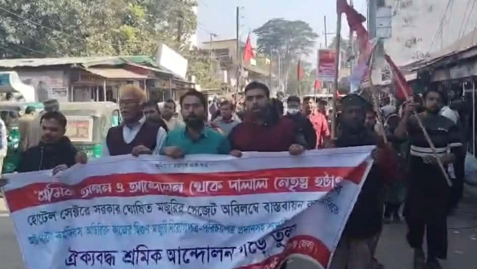 সারাদেশের ন্যায় হোটেল সেক্টরে সরকার ঘোষিত মজুরির গেজেট বাস্তবায়নের দাবিতে সুনামগঞ্জে বিক্ষোভ মিছিল ও সমাবেশ অনুষ্ঠিত হয়েছে।