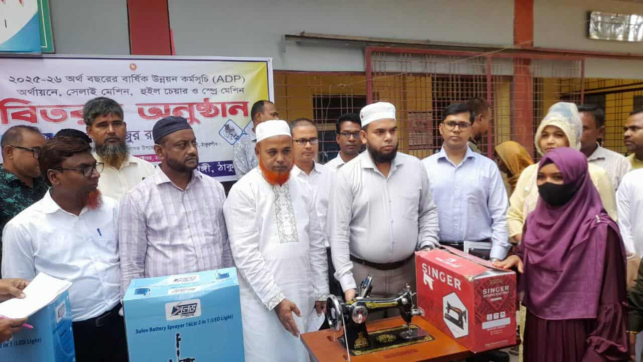 ঠাকুরগাঁওয়ের বালিয়াডাঙ্গী উপজেলায় ২০২৫-২৬ অর্থবছরের এডিপি প্রকল্পে আওতায় উপজেলা প্রশাসনের উদ্যোগে মানবিক সহায়তা কর্মসূচি অংশ হিসেবে সেলাই মেশিন, হুইলচেয়ার ও স্প্রে মেশিন বিতরণ করা হয়।