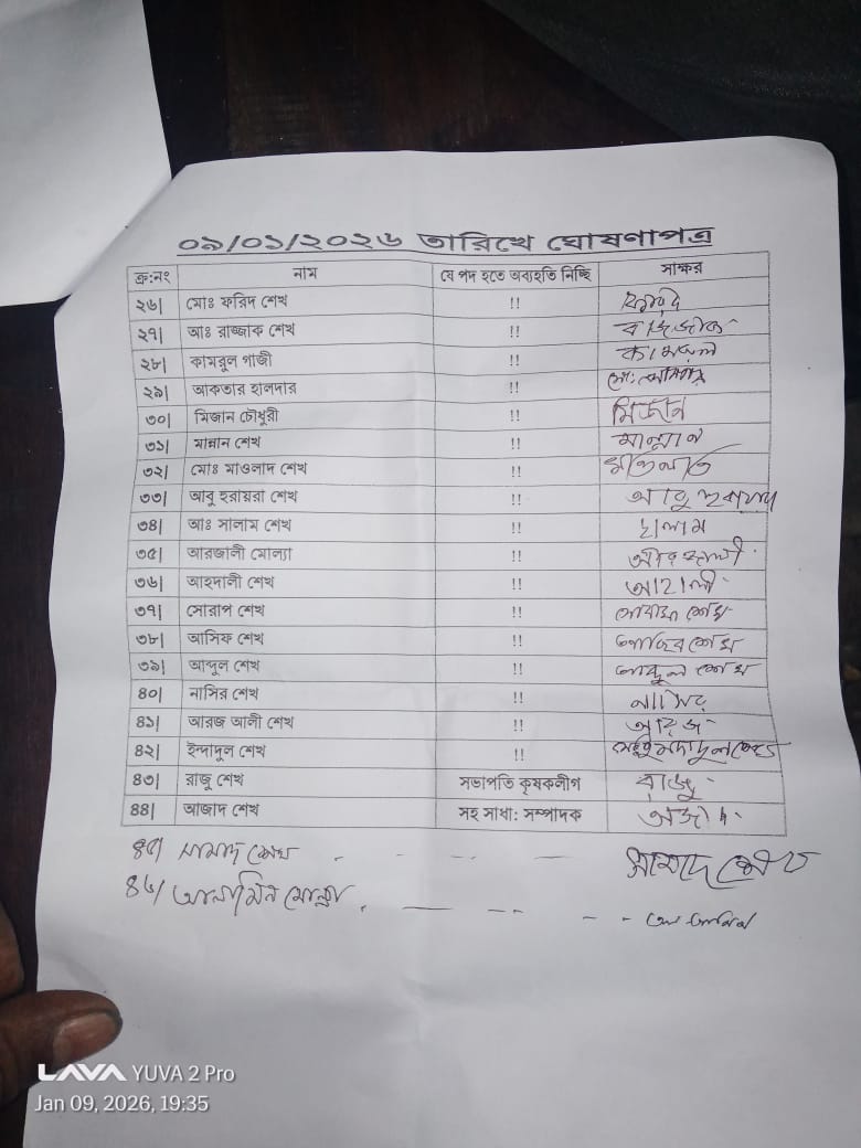 আঃ রাজ্জাক শেখ,কামরুল গাজী,আকতার হালদার,মিজান চৌধুরী,মান্নান শেখ, মোঃ মাওলাদ শেখ,আবু হুরায়রা শেখ,আঃ সালাম শেখ,আরজালী মোল্যা,আহদালী শেখ,সোরাপ শেখ,আসিফ শেখ,আব্দুল শেখ,নাসির শেখ,আরজ আলী শেখ,ইন্দাদুল শেখ, ওয়ার্ড কৃষক লীগের সভাপতি রাজু সেখ,ওয়ার্ড কৃষকলীগের সহ সাধারণ সম্পাদক আজাদ শেখ,সদস্য সামাদ শেখ,আলামিন মোল্লা সহ সতাধিক নেতা কর্মী।