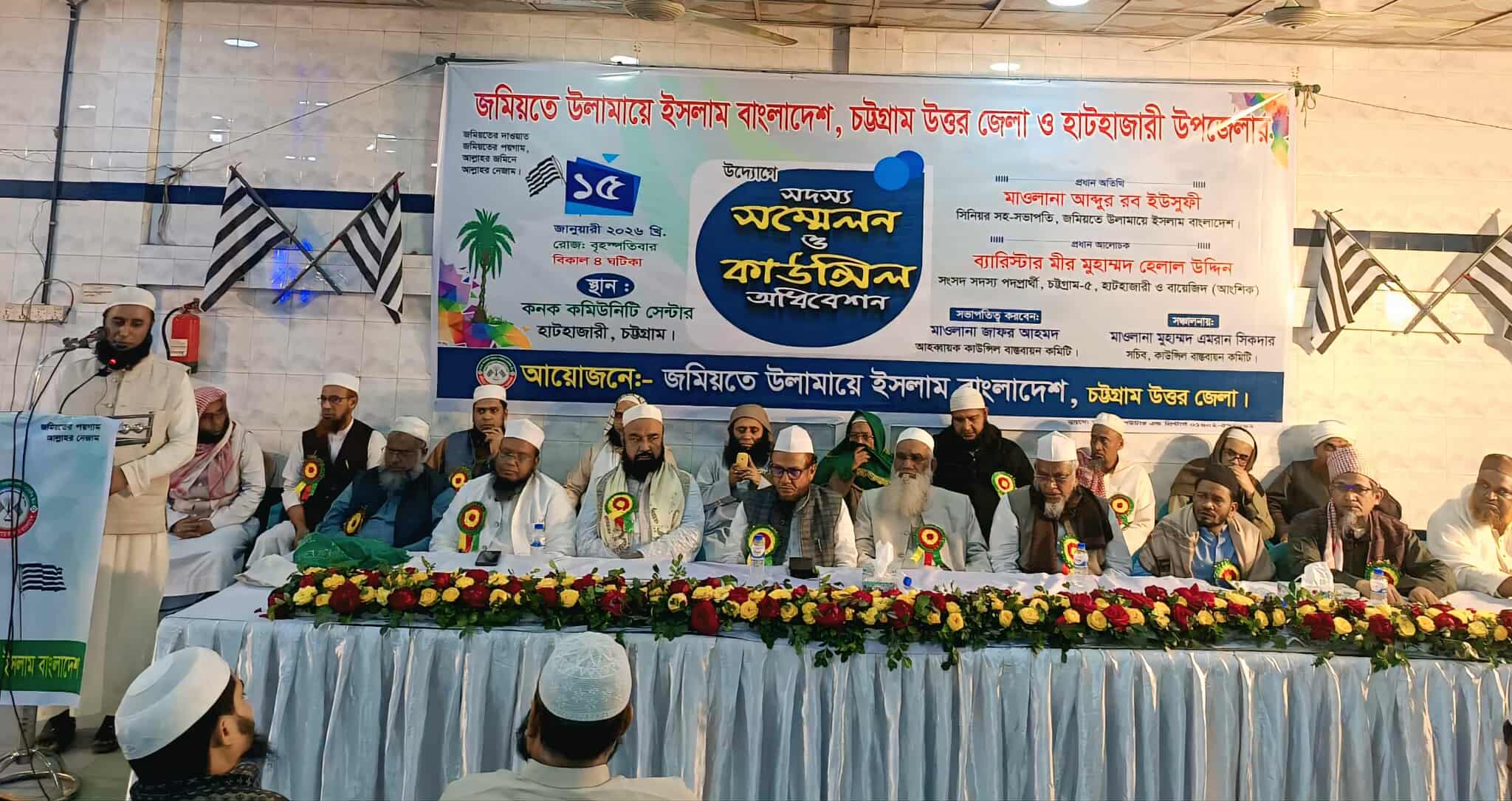 আজ(১৫ ই জানুয়ারি) রোজ বৃহস্পতিবার বিকাল ৪:০০ ঘটিকায় হাটহাজারী উপজেলাধীন কনক কমিউনিটি সেন্টারে জমিয়তে উলামায়ে ইসলাম বাংলাদেশ,চট্টগ্রাম উত্তর জেলা ও হাটহাজারী উপজেলার উদ্যোগে সদস্য সম্মেলন ও কাউন্সিল অধিবেশন, কাউন্সিল বাস্তবায়ন কমিটির সচিব, মাওলানা মোহাম্মদ ইমরান সিকদারের সঞ্চালনায় এবং কাউন্সিল বাস্তবায়ন কমিটির আহবায়ক, মাওলানা জাফর আহমদ এর সভাপতিত্বে অনুষ্ঠিত হয়।
