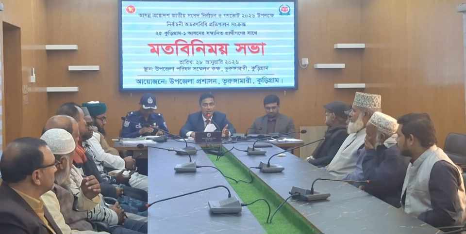 বুধবার (২৮ জানুয়ারি) দুপুরে উপজেলা পরিষদ সম্মেলন কক্ষে ২৫ কুড়িগ্রাম-১ আসনের নির্বাচনী প্রতিদ্বন্দ্বী প্রার্থী ও তাদের প্রতিনিধিদের সাথে এ সভা অনুষ্ঠিত হয়।
