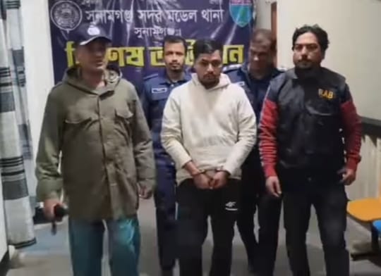 আটক শোয়েব জেলার তাহিরপুর উপজেলার শিমুলতলা গ্রামের গুলজার মিয়ার ছেলে ও পেশায় একটি মিষ্টির দোকানের কর্মচারী।
