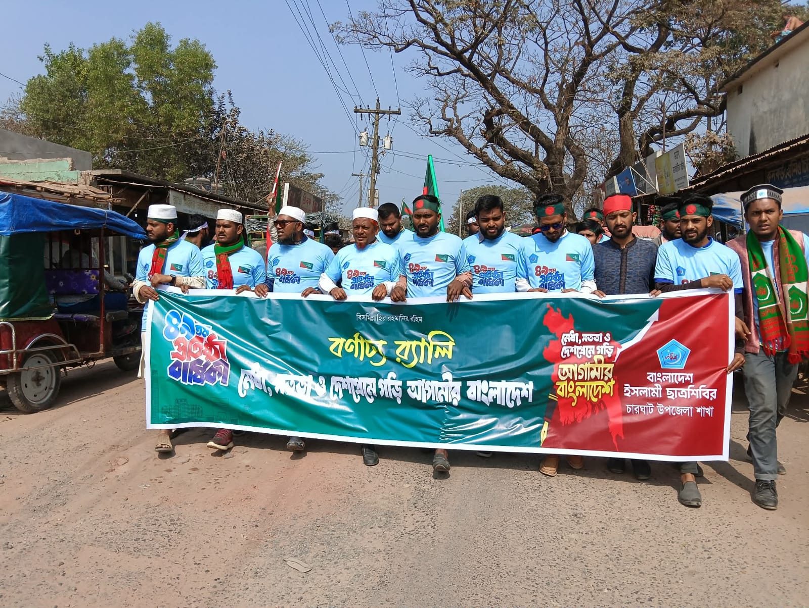 চারঘাটে ছাত্র শিবিরের ৪৯ তম প্রতিষ্ঠা বার্ষিকী উপলক্ষে বর্ণাঢ্য র্যালী