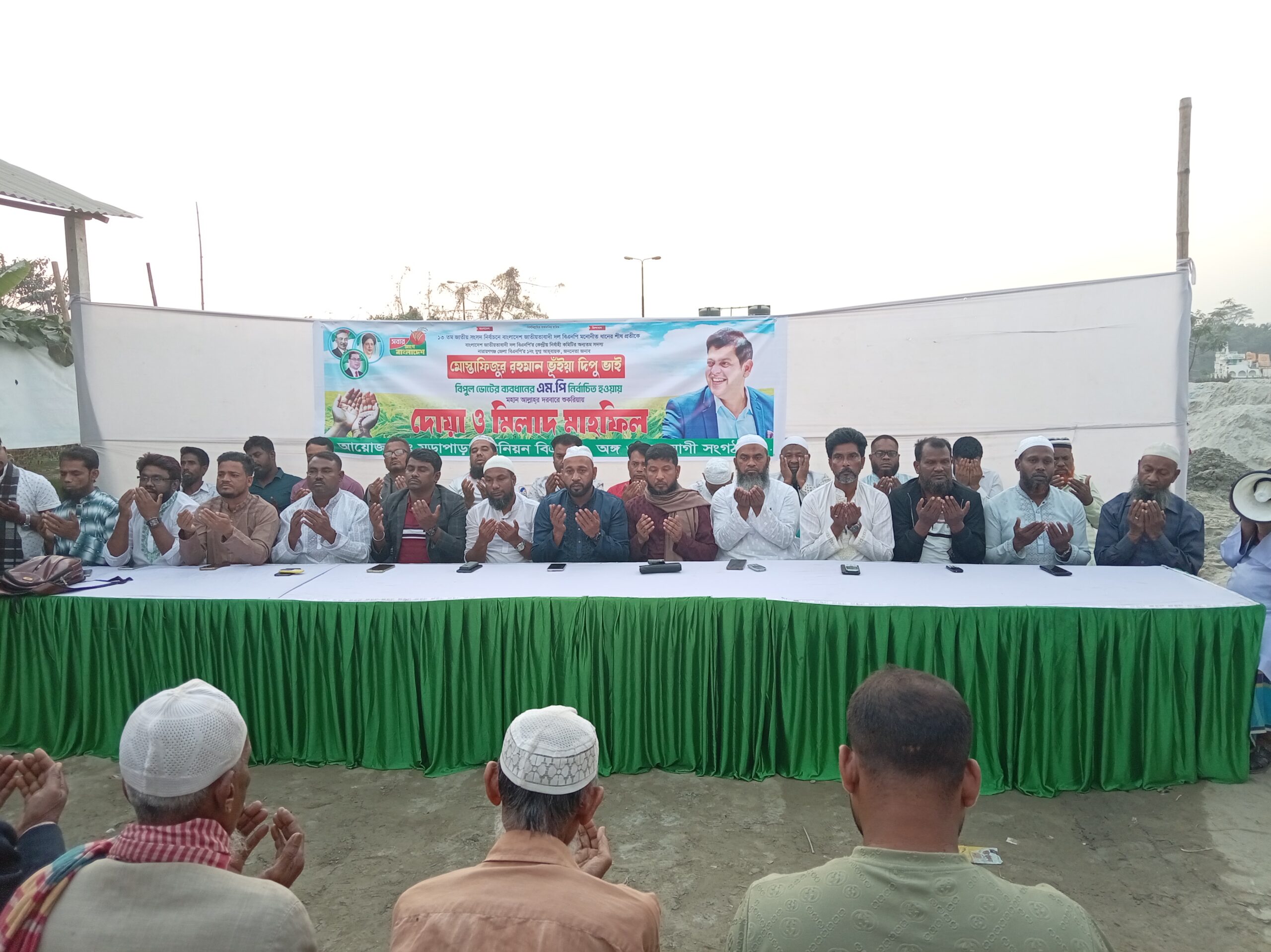নারায়ণগঞ্জের রূপগঞ্জে মুড়াপাড়া ইউনিয়ন বিএনপি অঙ্গ ও সহযোগী সংগঠন মোস্তাফিজুর রহমান ভূইয়া দীপু বিপুল ভোটে এমপি নির্বাচিত হওয়ায় দোয়া ও মিলাদ মাহফিল করে। ১৪ফেব্রুয়ারি শনিবার বিকালে মুড়াপাড়া ইউনিয়ন ৮নং ওয়ার্ড মঠেরঘাট এলাকায় এই দোয়া ও মিলাদ মাহফিল করা হয়।
