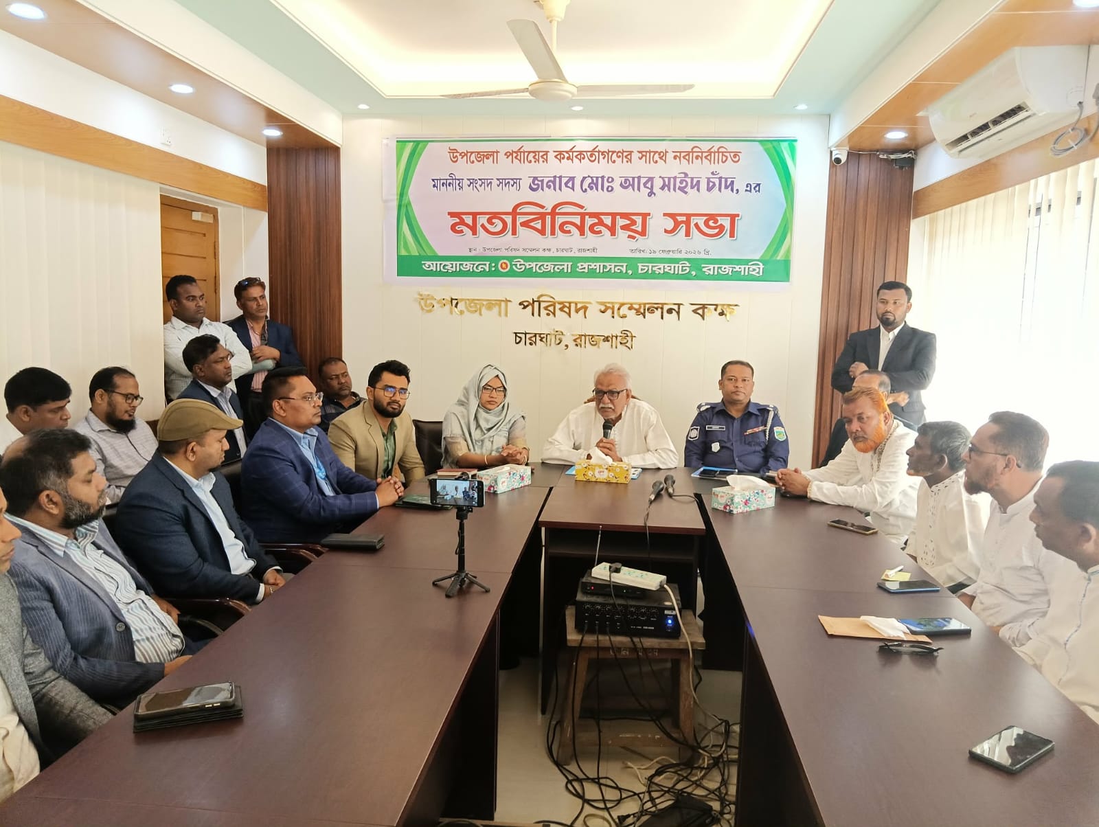 রাজশাহীর চারঘাট উপজেলার সকল কর্মকর্তাগণের সাথে চারঘাট-বাঘার নবনির্বাচিত মাননীয় সংসদ সদস্য জনাব মোঃ আবু সাইদ চাঁদ এর মতবিনিময় সভা অনুষ্ঠিত হয়েছে।