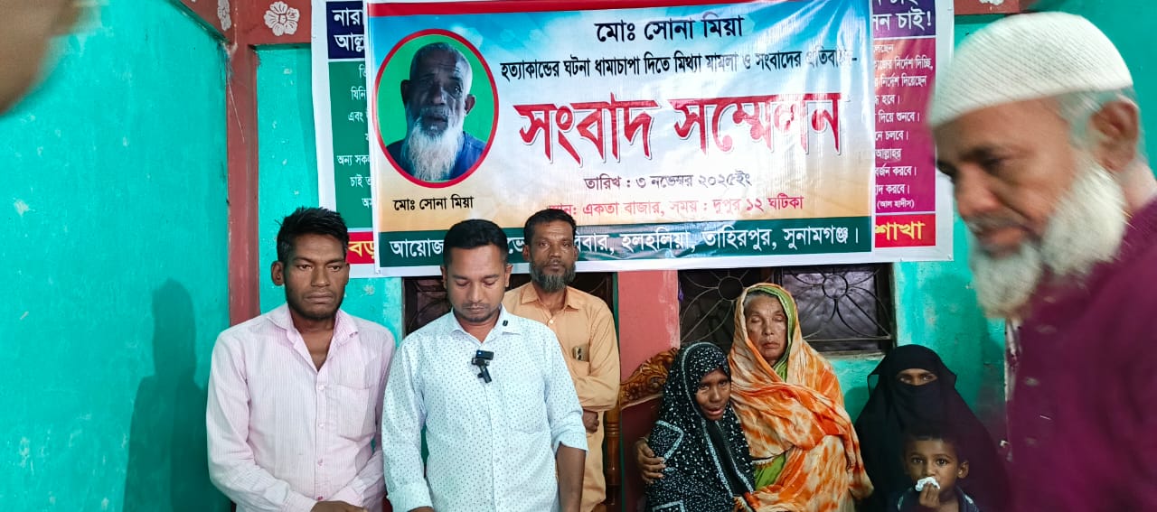সুনামগঞ্জ তাহিরপুর উপজেলায় বাড়িঘর ভাঙচুর ও লুটের অভিযোগে হত্যা মামলার আসামীদের করা মিথ্যা মামলা প্রত্যাহার ও পিতা বৃদ্ধ সোনা মিয়ার হত্যার বিচারের দাবিতে সংবাদ সম্মেলনে করেছে ভুক্তভোগী পরিবার।