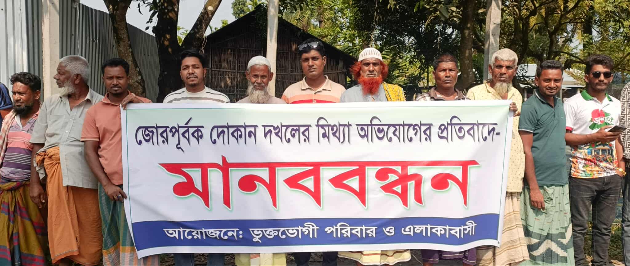 নাটোরের গুরুদাসপুরে দোকানঘর দখলের মিথ্যা অভিযোগের প্রতিবাদে প্রতিপক্ষ রেজাউল মহরীসহ তার দুই ভাইয়ের বিরুদ্ধে মানববন্ধন করেছেন ভুক্তভোগী কাওসার সরকারসহ তাদের আত্মীয়-স্বজন ও এলাকাবাসী।