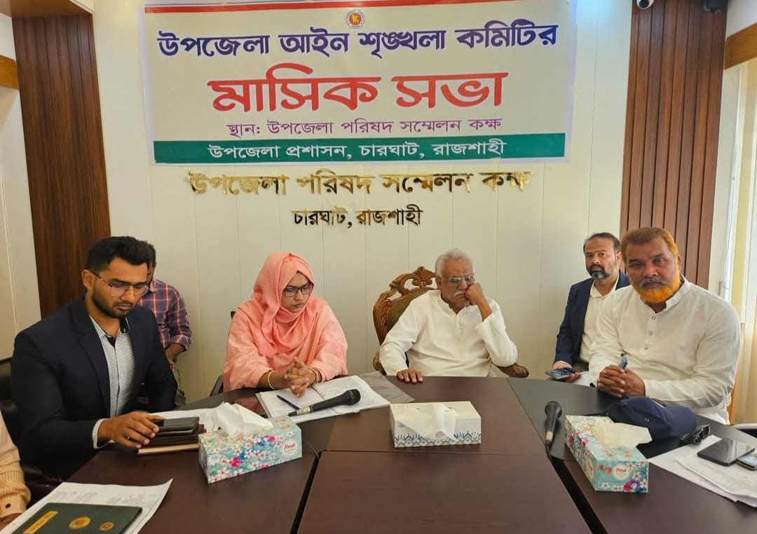 রাজশাহীর চারঘাট উপজেলা প্রশাসনের আয়োজনে আইনশৃংঙ্খলা কমিটির মাসিক সভা অনুষ্ঠিত হয়েছে। বুধবার (২৫ ফেব্রুয়ারী) বেলা ১১টায় উপজেলা পরিষদের সম্মেলন কক্ষে এ সভা অনুষ্ঠিত হয়। উপজেলা নির্বাহী কর্মকর্তা জান্নাতুল ফেরদৌস এর সভাপতিত্বে সভায় প্রধান অতিথি হিসেবে উপস্থিত ছিলেন, রাজশাহী-৬ চারঘাট-বাঘা আসনের নবনির্বাচিত এমপি আবু সাইদ চাঁদ।