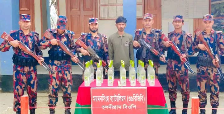 ময়মনসিংহ ব্যাটালিয়ন (৩৯ বিজিবি) সূত্র জানায়, সীমান্ত দিয়ে অভিনব কৌশলে ভারতীয় মদ ও ওষুধ পাচারের চেষ্টা চলছিল। গোপন সংবাদের ভিত্তিতে অভিযান জোরদার করলে চালানসহ এক মাদককারবারিকে আটক করা সম্ভব হয়।