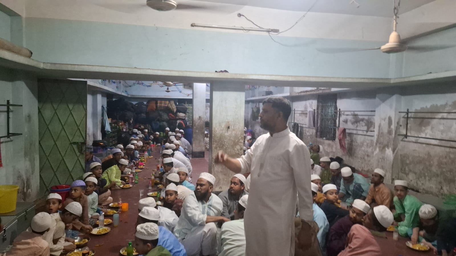অনুষ্ঠান শেষে মাদরাসা ও মসজিদের দায়িত্বরত আলেম-ওলামা এবং মাদরাসার এতিম শিশুদের অংশগ্রহণে প্রায় দেড় হাজার রোজাদার একসঙ্গে ইফতার গ্রহণ করেন।