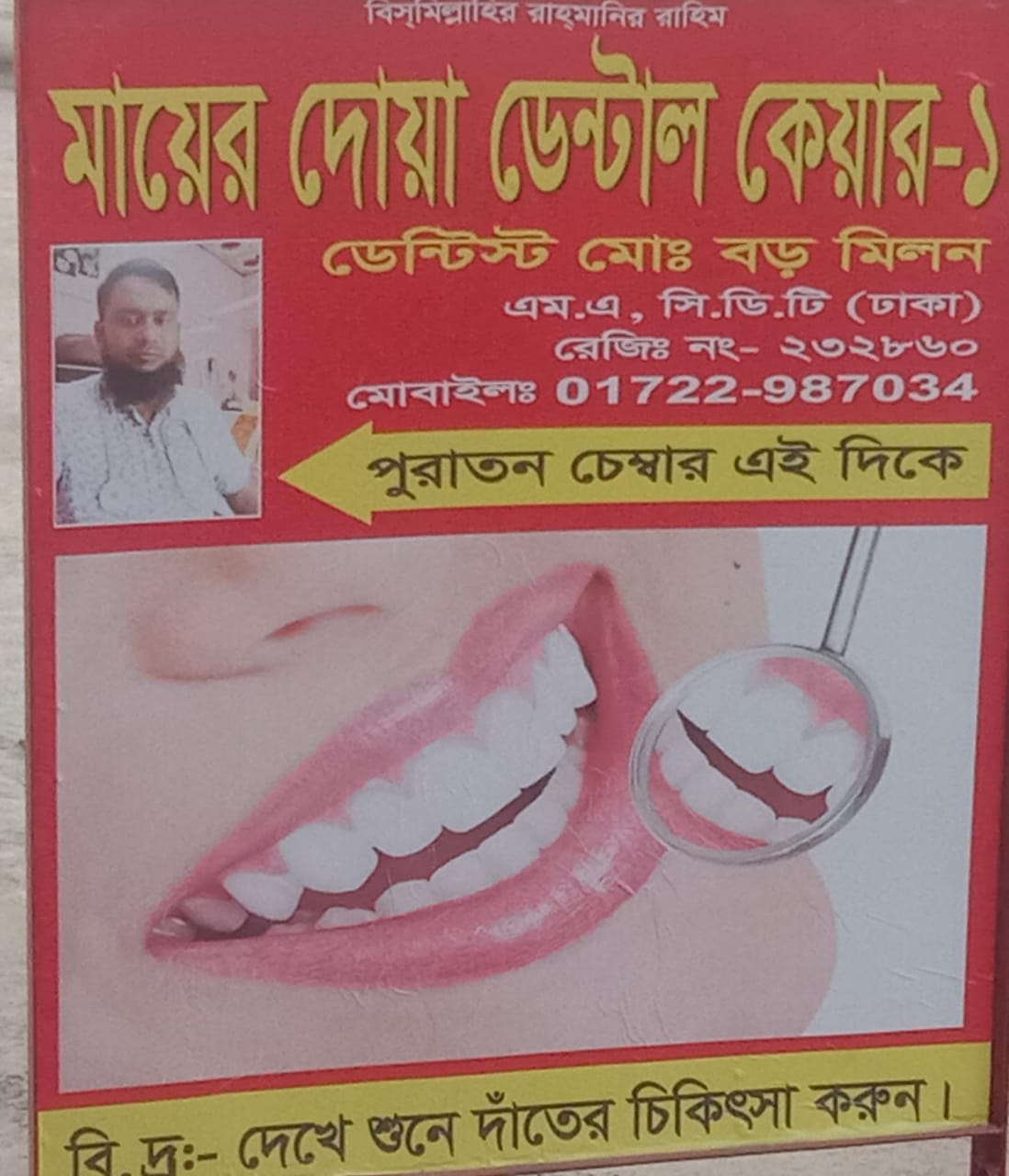 প্রতিষ্ঠানটির দায়িত্বে রয়েছেন অভিজ্ঞ ডেন্টাল প্রফেশনাল ডেন্টিস্ট মোঃ বড় মিলন, এম.এ, সি.ডি.টি (ঢাকা)। তিনি বলেন, “রোগীদের নিরাপদ ও মানসম্মত দন্তসেবা দেওয়াই আমাদের প্রধান লক্ষ্য। সাশ্রয়ী খরচে উন্নত চিকিৎসা নিশ্চিত করতে আমরা সর্বোচ্চ আন্তরিকতা নিয়ে কাজ করছি।”