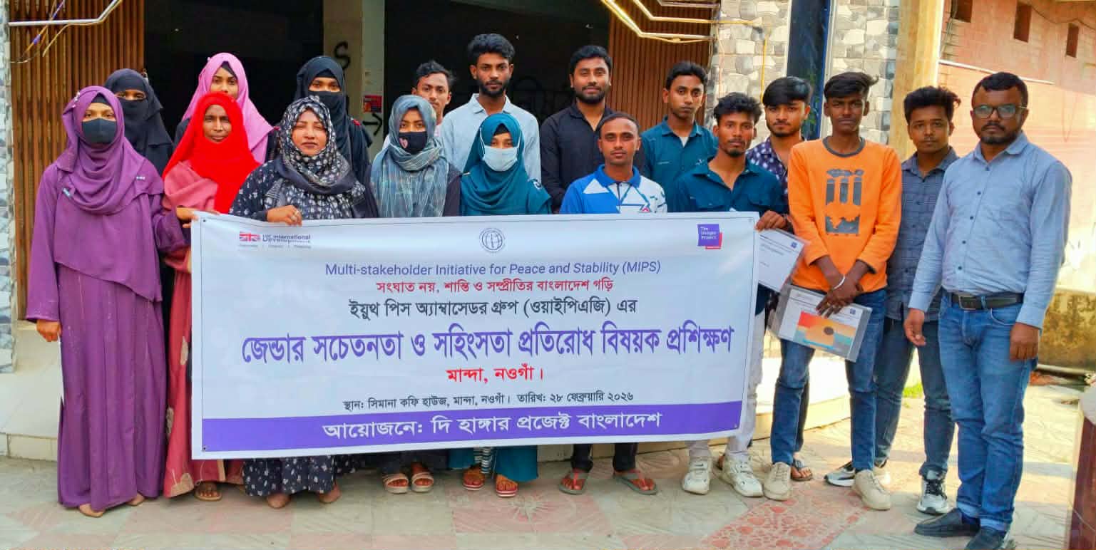 নওগাঁ জেলার মান্দা উপজেলায় নারী-পুরুষের সমান মর্যাদা ও সহাবস্থানের মাধ্যমে একটি শান্তিপূর্ণ ও বৈষম্যমুক্ত সমাজ গড়ে তোলার প্রত্যয়ে নওগাঁর মান্দাতে সম্পন্ন হলো “জেন্ডার সচেতনতা ও নারীর প্রতি সহিংসতা প্রতিরোধ” বিষয়ক প্রশিক্ষণ। এফসিডিও’র অর্থায়নে দি হাঙ্গার প্রজেক্ট বাংলাদেশের মাল্টি-স্টেকহোল্ডার ইনিশিয়েটিভ ফর পিস অ্যান্ড স্ট্যাবিলিটি (এমআইপিএস) প্রকল্পের আওতায় শনিবার (২৮ ফেব্রুয়ারী ২০২৬) সিমানা কফি হাউজ হলরুমে দিনব্যাপী এ প্রশিক্ষণের আয়োজন করা হয়।