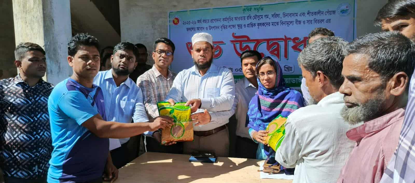 ঠাকুরগাঁওয়ের বালিয়াডাঙ্গী উপজেলায় ২০২৫- ২০২৬ অর্থ বছরে প্রণোদনা কর্মসুচির আওতায় রবি মৌসুমে গম,সরিষা, চিনাবাদাম, এবং শীতকালীন পেঁয়াজ ফসলের আবাদ ও উৎপাদন বৃদ্ধির লক্ষে ক্ষুদ্র ও প্রান্তিক কৃষকদের মাঝে বিনামূল্যে বীজ ও সার বিতরণ কার্যক্রম শুভ উদ্বোধন করা হয়েছে।