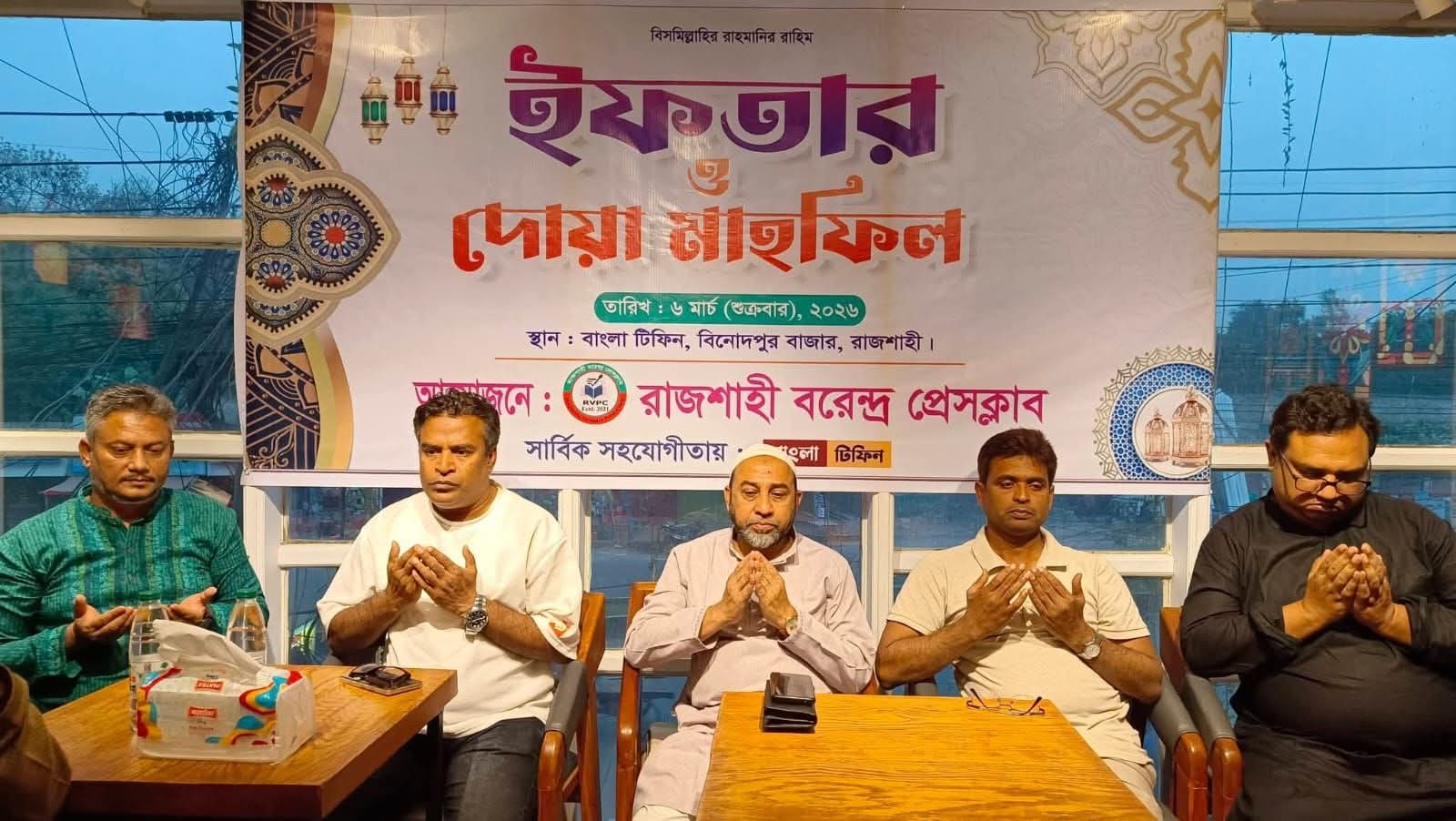 পবিত্র মাহে রমজান উপলক্ষে রাজশাহী বরেন্দ্র প্রেসক্লাবের উদ্যোগে ইফতার ও দোয়া মাহফিল অনুষ্ঠিত হয়েছে। শুক্রবার (৬ মার্চ) বিকেলে রাজশাহী মহানগরীর ‘বাংলা টিফিন’ রেস্তোরাঁয় এই অনুষ্ঠানের আয়োজন করা হয়। ইফতারের আগে এক সংক্ষিপ্ত আলোচনা সভায় সাংবাদিকদের পারস্পরিক ঐক্য, সম্প্রীতি এবং পেশাদারিত্ব বজায় রেখে বস্তুনিষ্ঠ সাংবাদিকতা চর্চার ওপর গুরুত্বারোপ করা হয়। অনুষ্ঠানে সভাপতিত্ব করেন রাজশাহী বরেন্দ্র প্রেসক্লাবের সভাপতি রেজাউল করিম।