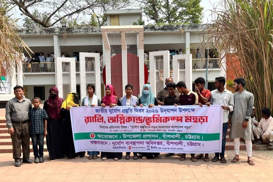 চট্টগ্রামের বাঁশখালী উপজেলায় আন্তর্জাতিক দুর্যোগ প্রস্তুতি দিবস উপলক্ষে র্যালি ও অগ্নিনির্বাপক মহড়া অনুষ্ঠিত হয়েছে। মঙ্গলবার সকালে উপজেলা প্রশাসনের আয়োজনে, দুর্যোগ ব্যবস্থাপনা অধিদপ্তরের বাস্তবায়নে এবং সেভ দ্য চিলড্রেন ও ইয়ং পাওয়ার ইন সোশ্যাল অ্যাকশন (ইপসা)-এর সহযোগিতায় উপজেলা পরিষদ মাঠে এ কর্মসূচি পালিত হয়।