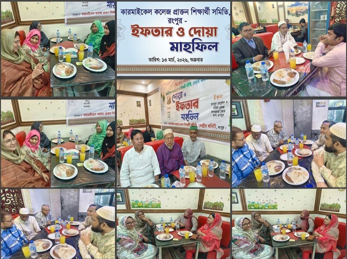 রংপুরের ঐতিহ্যবাহী কারমাইকেল কলেজের প্রাক্তন শিক্ষার্থীদের সংগঠন ‘কারমাইকেল কলেজ প্রাক্তন শিক্ষার্থী সমিতি, রংপুর’-এর উদ্যোগে এক ইফতার ও দোয়া মাহফিল অনুষ্ঠিত হয়েছে। শুক্রবার (১৩ মার্চ) নগরীর বাংলাদেশ ব্যাংক মোড়ে অবস্থিত রংপুর হোটেল ও মিষ্টি মেলায় এই আয়োজন সম্পন্ন হয়।