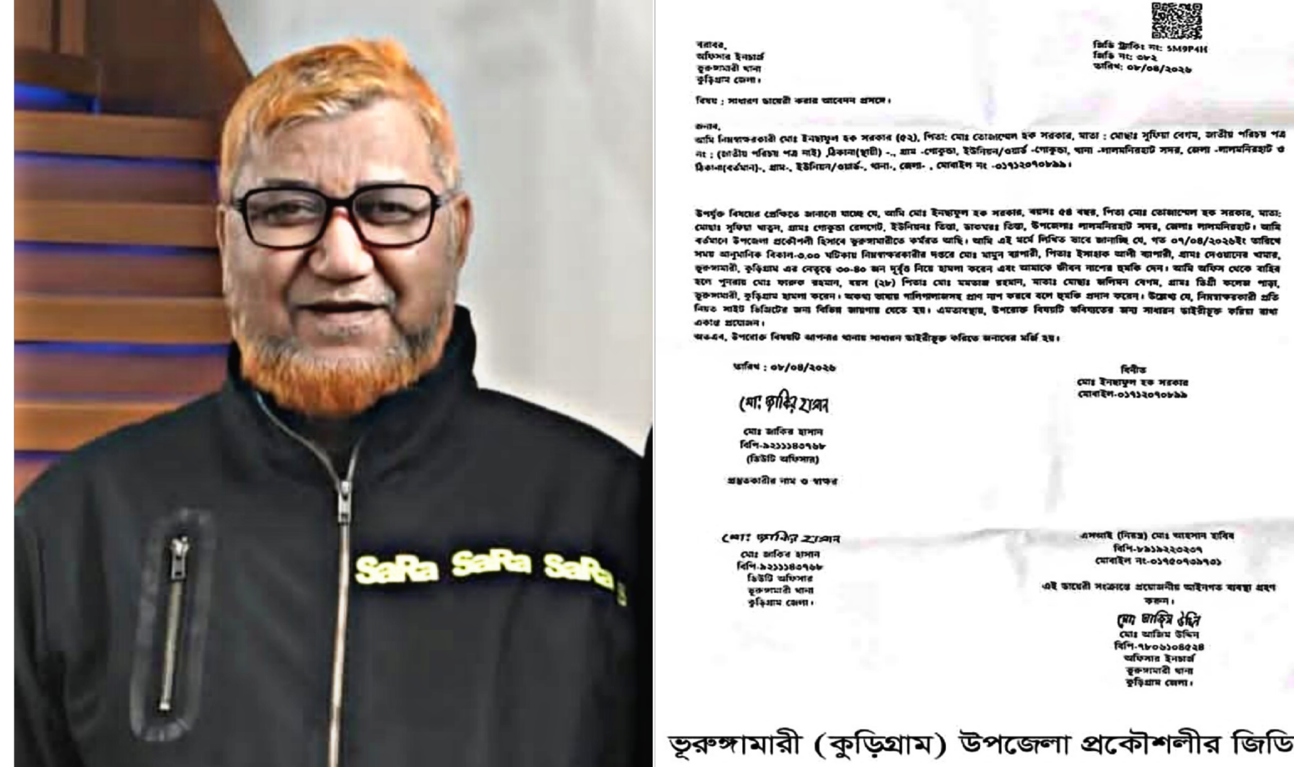বুধবার (৮ এপ্রিল) রাতে দায়ের করা জিডিতে উল্লেখ করা হয়েছে মঙ্গলবার (৭ এপ্রিল) বিকালে মামুন ব্যাপারীর নেতৃত্বে ৩০/৪০ জন দুর্বৃত্ত তার অফিস কক্ষে প্রবেশ করে হামলার চেষ্টা ও প্রাণ নাশের হুমকি দেয়। এ ঘটনার পর তিনি অফিস থেকে বাইরে এলে জিয়া সাইবার ফোর্সের উপজেলা সভাপতি ফারুক রহমান অকথ্য ভাষায় গালাগালি করে প্রাণ নাশের হুমকি দেন। পরে তিনি তার ভবিষ্যত নিরাপত্তার জন্য সাধারণ ডায়রীভুক্ত করার আবেদন জানান।