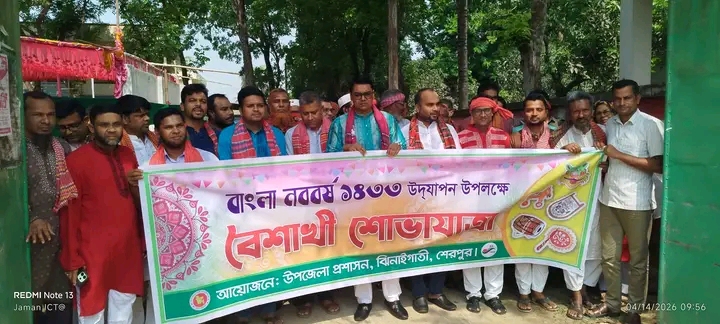 ঝিনাইগাতীতে বাংলা নববর্ষ ১৪৩৩ উদযাপন উপলক্ষে বর্ষবরণ আনন্দ শোভাযাত্রা ও লোকজ মেলা অনুষ্ঠিত !