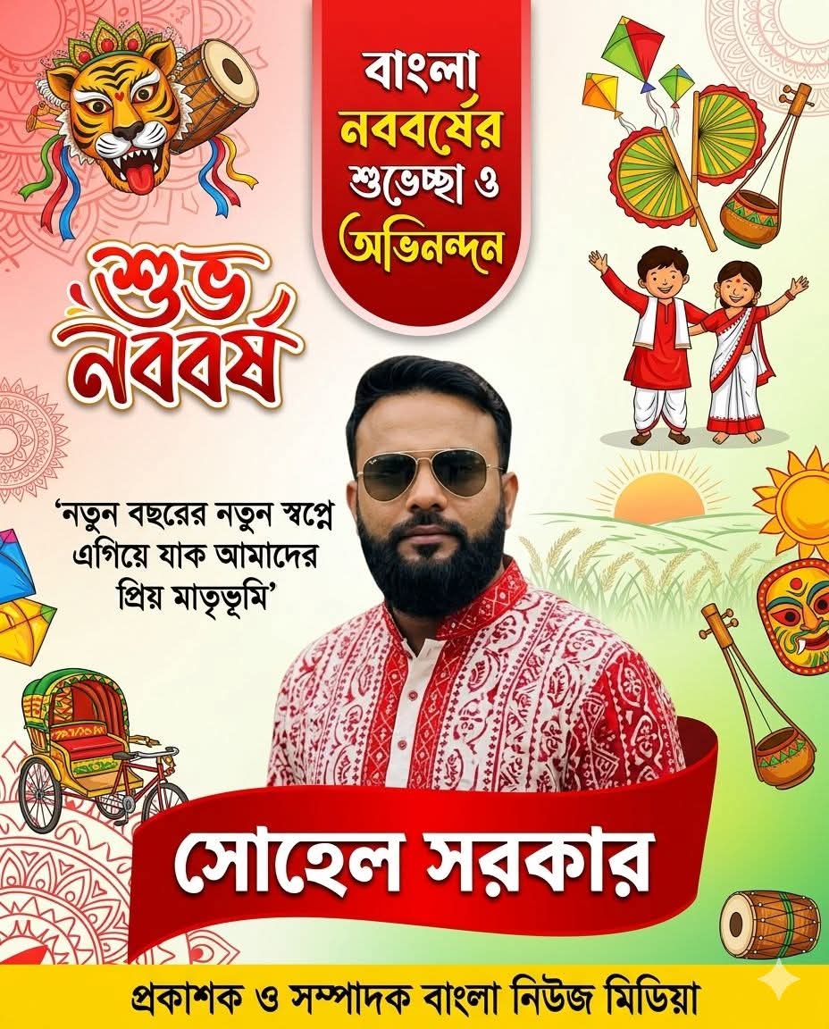 পহেলা বৈশাখ, বাঙালি সংস্কৃতির অবিচ্ছেদ্য অংশ ও প্রাণের উৎসব। বাঙালির এই গৌরবোজ্জ্বল দিনটি উপলক্ষে দেশ ও প্রবাসের সকল বাঙালিকে বাংলা নববর্ষের আন্তরিক শুভেচ্ছা জানিয়েছেন বাংলা নিউজ মিডিয়া-র প্রকাশক ও সম্পাদক সোহেল সরকার।
