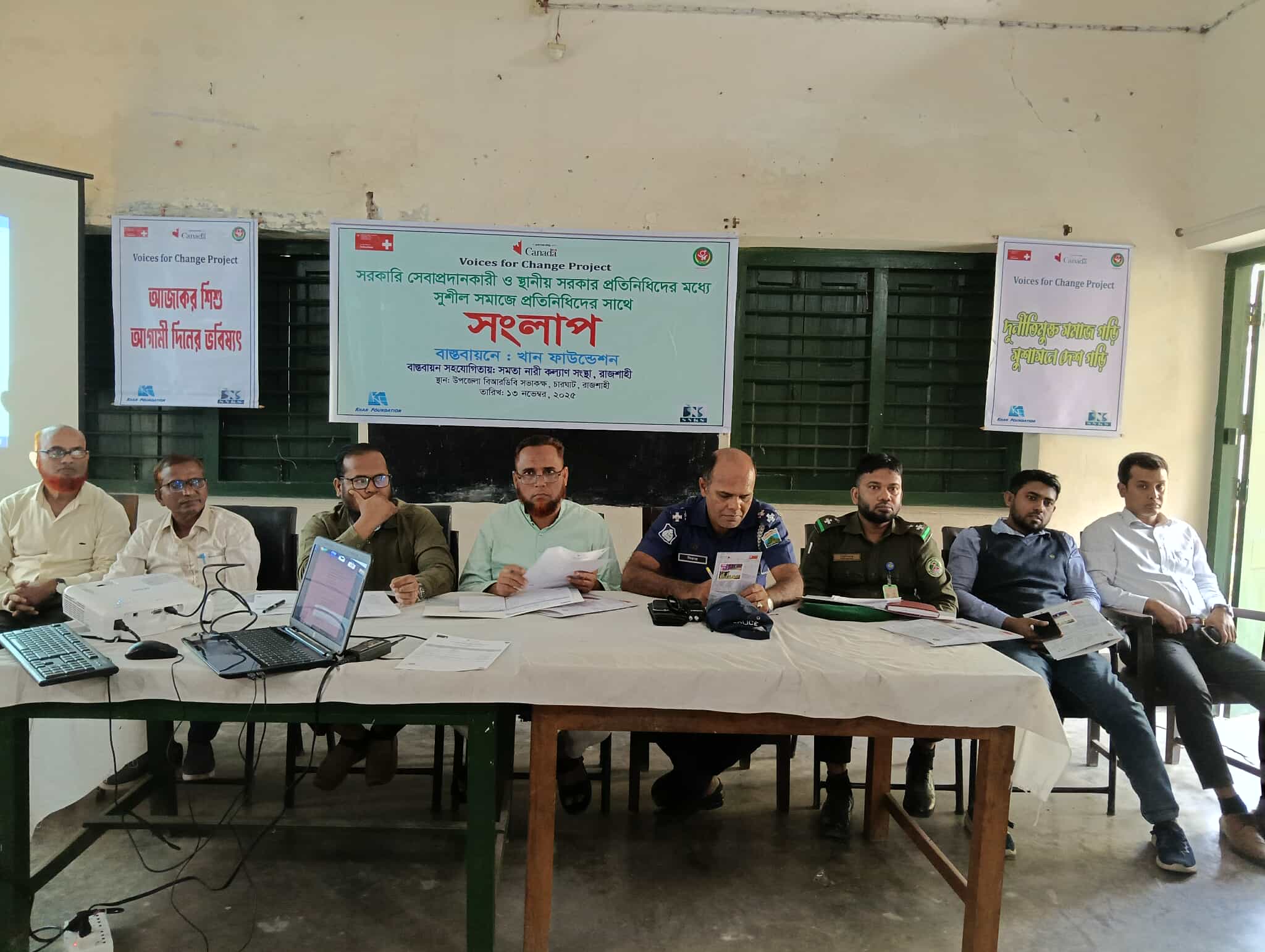 "Voices for Change Project" এর সহযোগিতায় রাজশাহীর চারঘাটে সরকারি সেবাপ্রদানকারী ও স্থানীয় সরকার প্রতিনিধিদের মধ্যে সুশীল সমাজে প্রতিনিধিদের সাথে সংলাপ অনুষ্ঠিত হয়েছে।