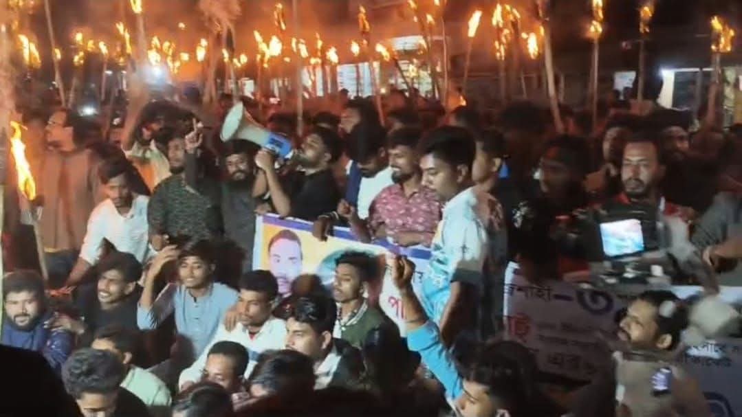 রাজশাহী-৩ (পবা-মোহনপুর) আসনে বিএনপির প্রার্থী পরিবর্তনের দাবিতে পবা উপজেলার দারুশা বাজারে শনিবার সন্ধ্যায় মশাল মিছিল অনুষ্ঠিত হয়েছে।