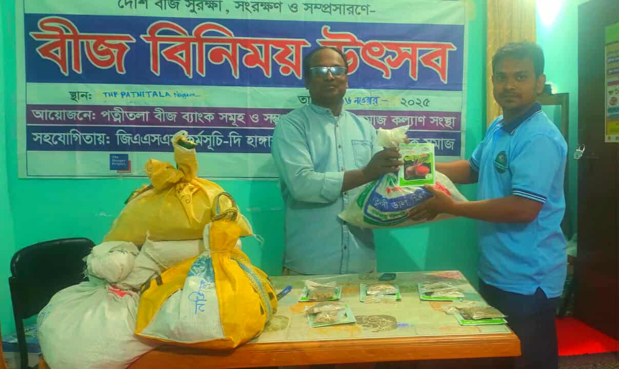 তদুপলক্ষে পত্নীতলা উপজেলায় গড়ে ওঠা ৩০ টি বীজ ব্যাংক হতে সংগ্রহকৃত প্রায় ৬০ কেজি বীজ প্যাকেটজাতকরণ এবং ৬টি গ্রামের ৮৮০ টি পরিবারের উদ্দেশ্যে বীজ বিনিময় করা হয়। ১৬-২২ নভেম্বর ২০২৫ শীতকালীন শাক সবজির বীজ বিনিময় সপ্তাহের উদ্বোধন করা হলো।
