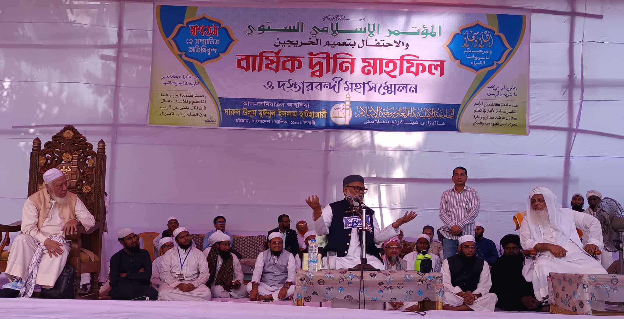 উক্ত মাহফিল ও দস্তরবন্দী সম্মেলন গত কাল বৃহস্পতিবার দারুল উলুম মঈনুল ইসলাম হাটহাজারী মাদ্রাসার শিক্ষাসচিব আল্লামা মুফতি কেফায়াতুল্লাহ সাহেবের উদ্বোধনী বয়ানের মাধ্যমে আরম্ভ হয় এবং বৃহস্পতিবার রাতে এশার নামাজের পর প্রথম সেশনে গত ১৪৪৪-৪৫ হিজরি শিক্ষাবর্ষে দাওরায়ে হাদিস (মাস্টার্স ) সম্পন্নকারী তরুণ আলেমদের একাংশকে সম্মাননা পাগড়ি প্রদান করা হয়। এবং
